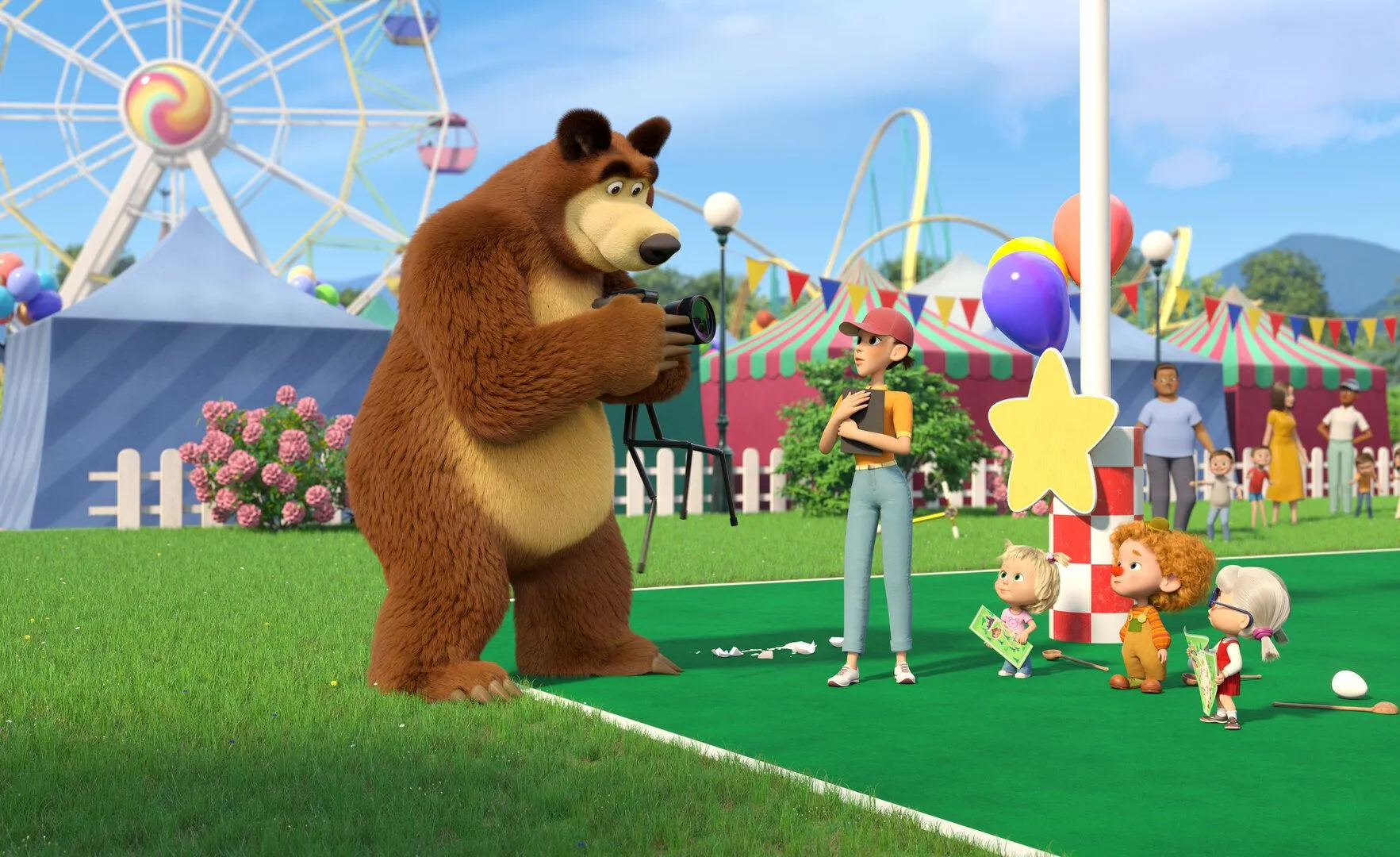 Маша, Даша и Медведь отправляются в Парк Чудес, где их ждут захватывающие аттракционы. Даша очень хочет попасть на шоу, поэтому нацелена на победу во всех квестах парка, Маша хочет просто повеселиться, а Мишка настроен испытать свой «умный» фотоаппарат.