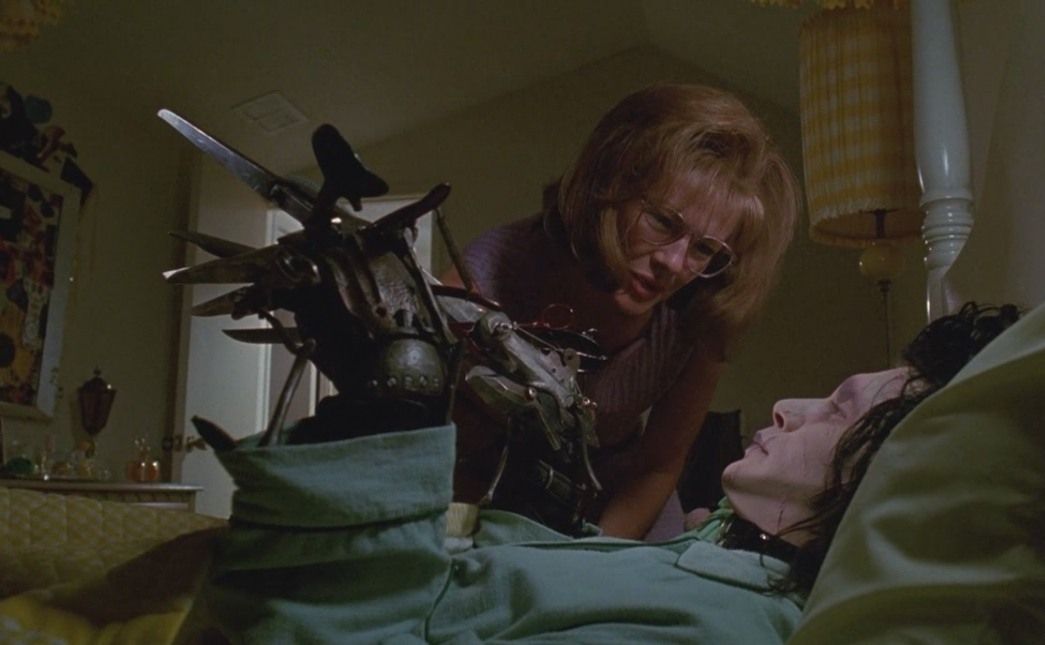 Здесь проживает Эдвард, никогда не покидавший пределы особняка. Выясняется, что Эдвард был создан безумным ученым и брошен на произвол судьбы. Желая помочь Эдварду, Пэг приглашает чудака с ножами вместо пальцев в свой дом. Эдвард заводит дружбу с ее дочерью-неформалкой Ким и без труда ладит с соседями. Но неприятности не заставляют себя ждать.